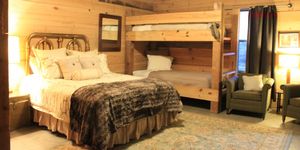 The lodge features six well-appointed bedrooms, including private suites with adjoining bathrooms, along with a total of seven full bathrooms to ensure every guest has space and privacy. Handicap-accessible showers are available, making the lodge suitable for guests of all mobility levels.